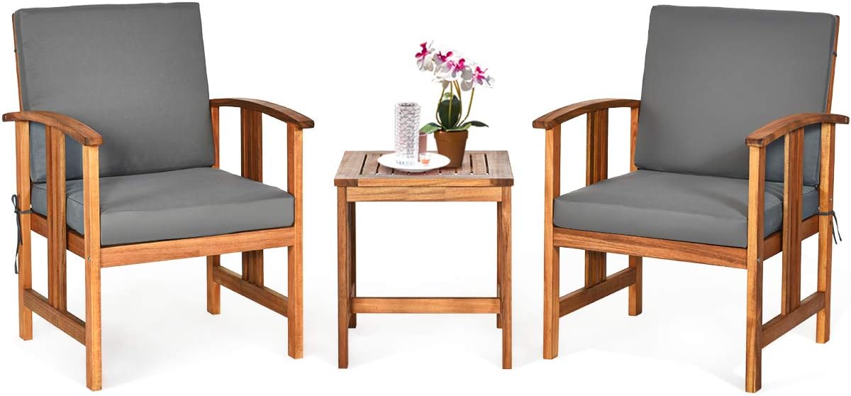 High-Grade Teak Wood: The whole bistro set is made of premium teak wood, which is sturdy and crack-resistant for long-time use. And the water-based vanished surface...