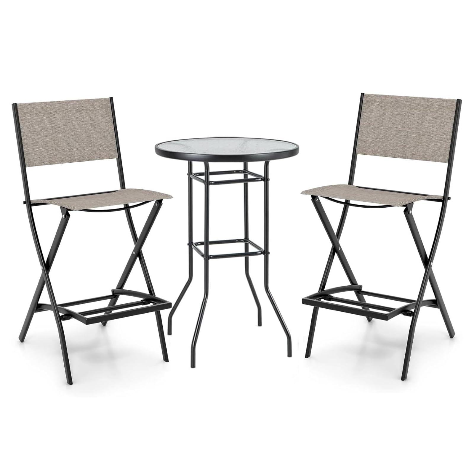 Giantexuk 3 piece bistro set, garden dining furniture set with round bar table and 2 folding chairs