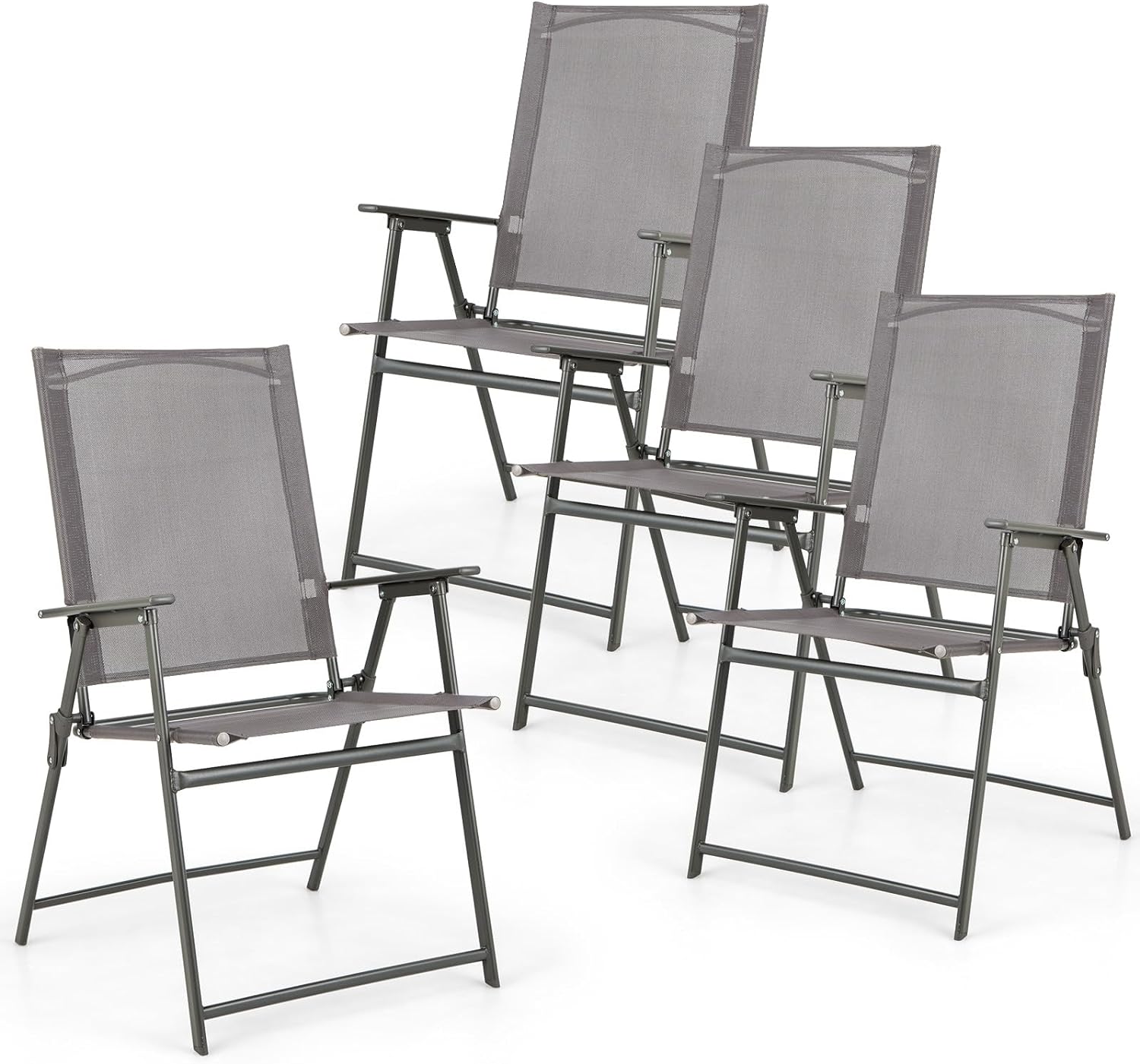 Giantexuk patio folding chairs set of 2/4, metal frame high back bistro dining chair with armrest