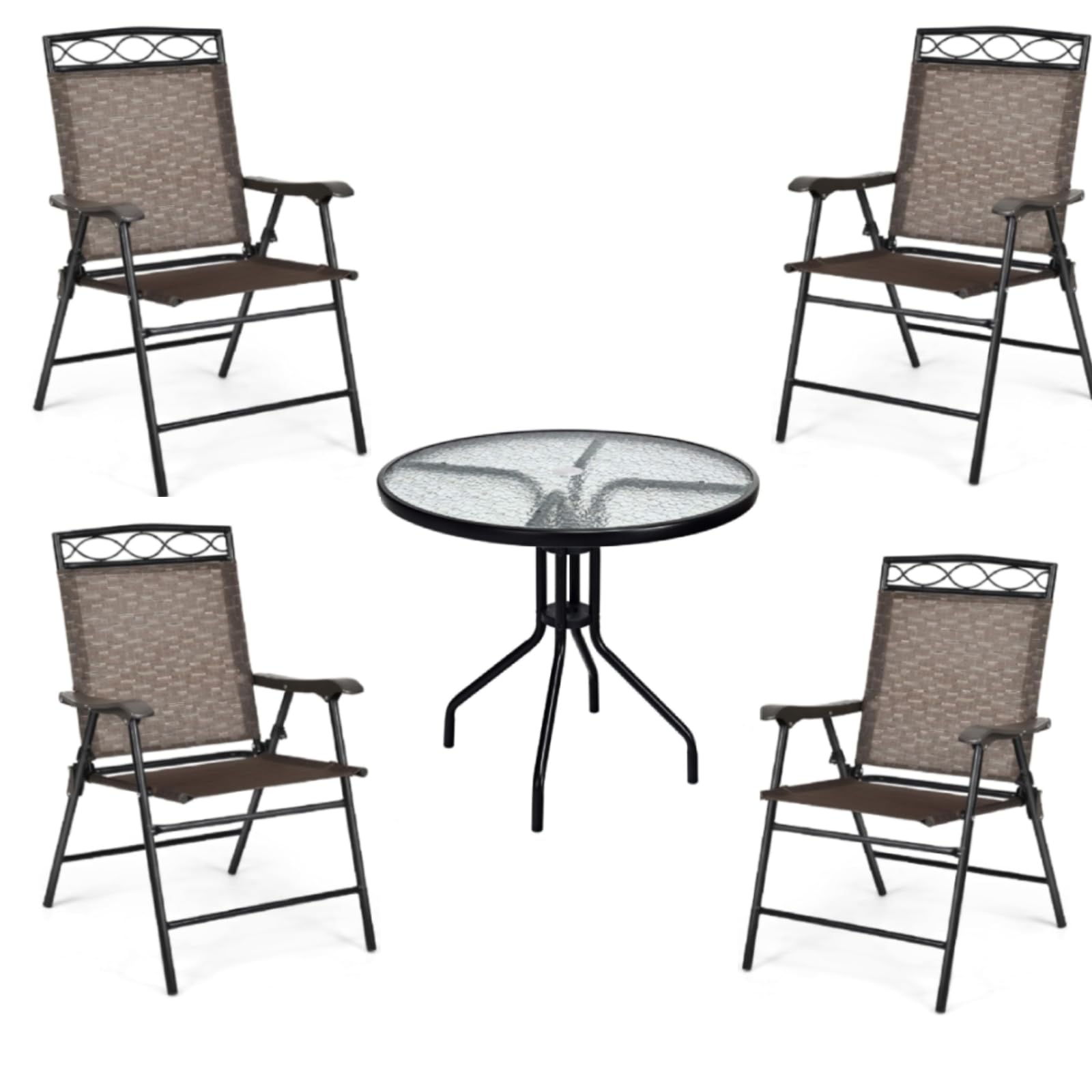 Giantexuk 5 piece garden furniture set, patio conservatory set with 4 folding chairs and tempered glass table