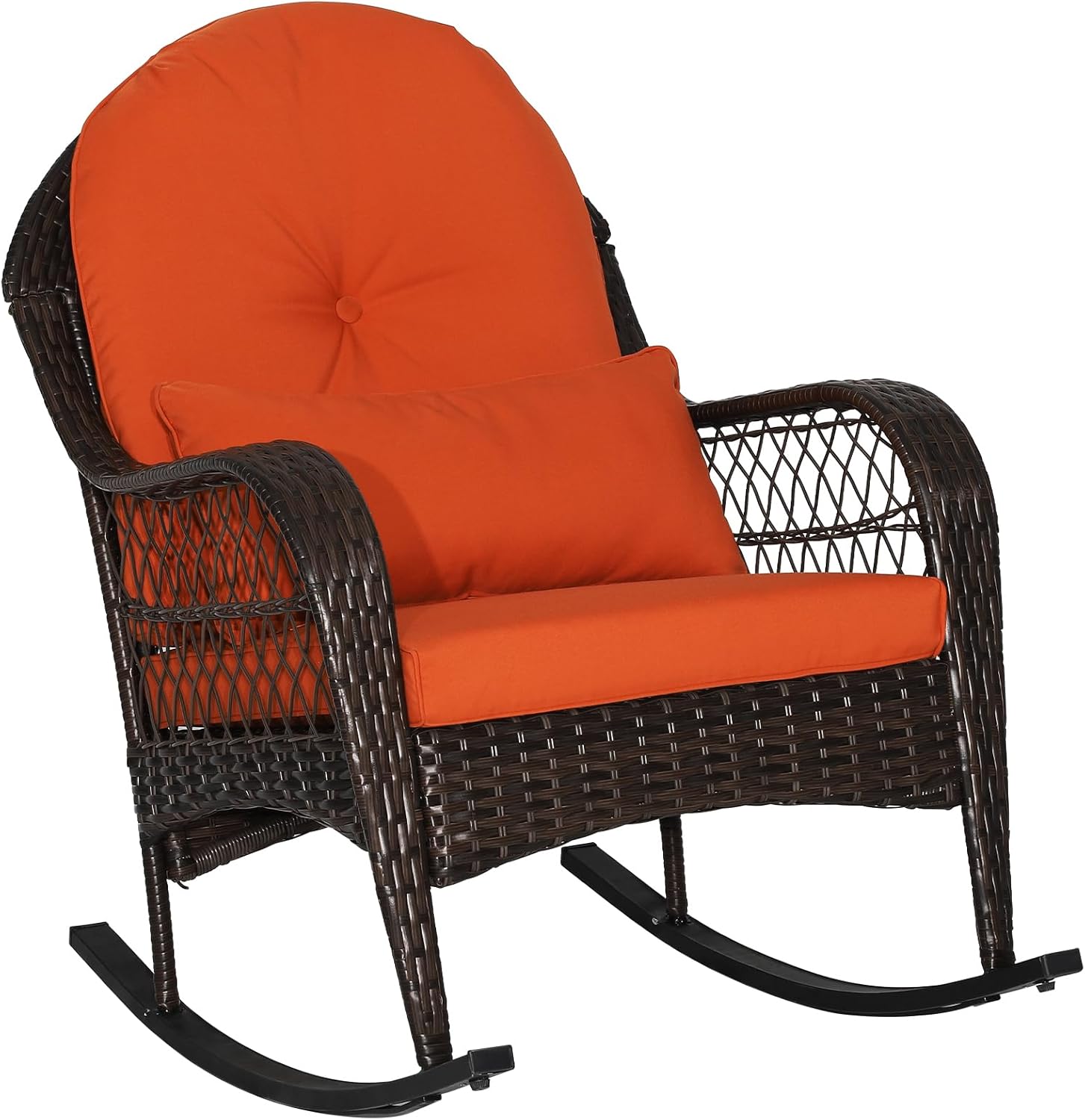 Outdoor wicker rocking chair with heavy-duty steel frame