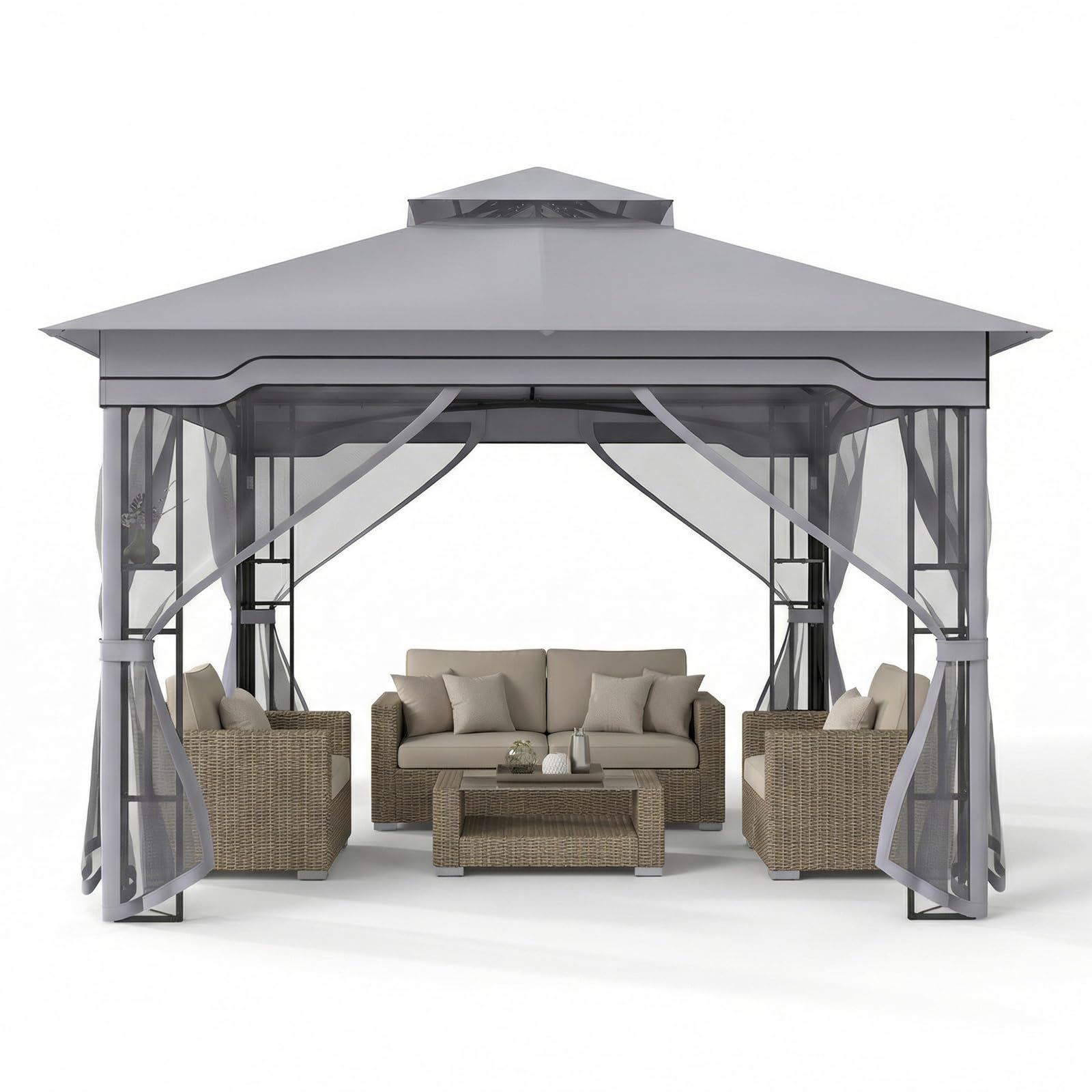Description:Create a comfortable and stylish outdoor retreat with this well-designed patio gazebo.Constructed with a sturdy metal frame and topped with a tear-resistant double-tiered roof, this outdoor...