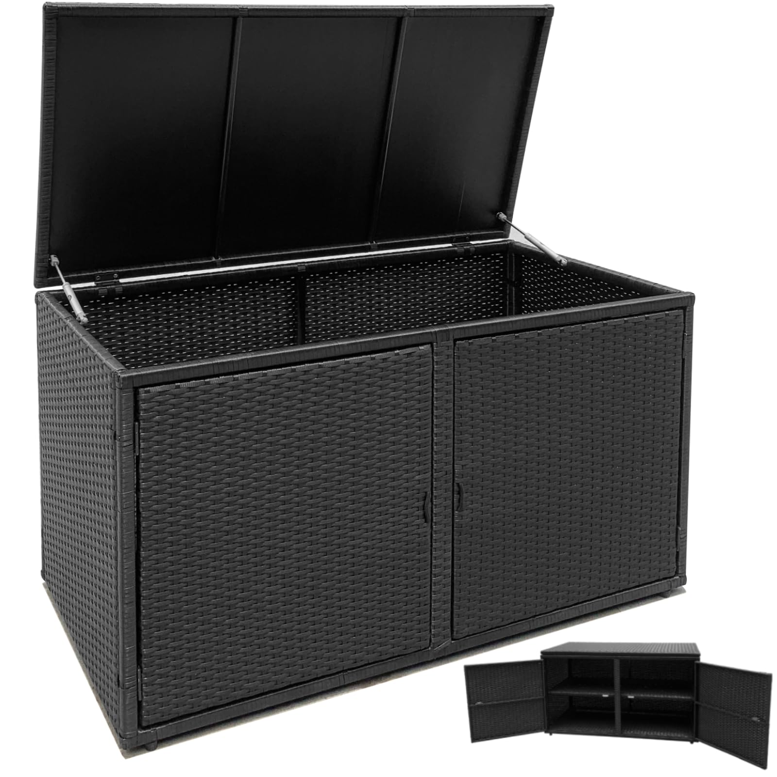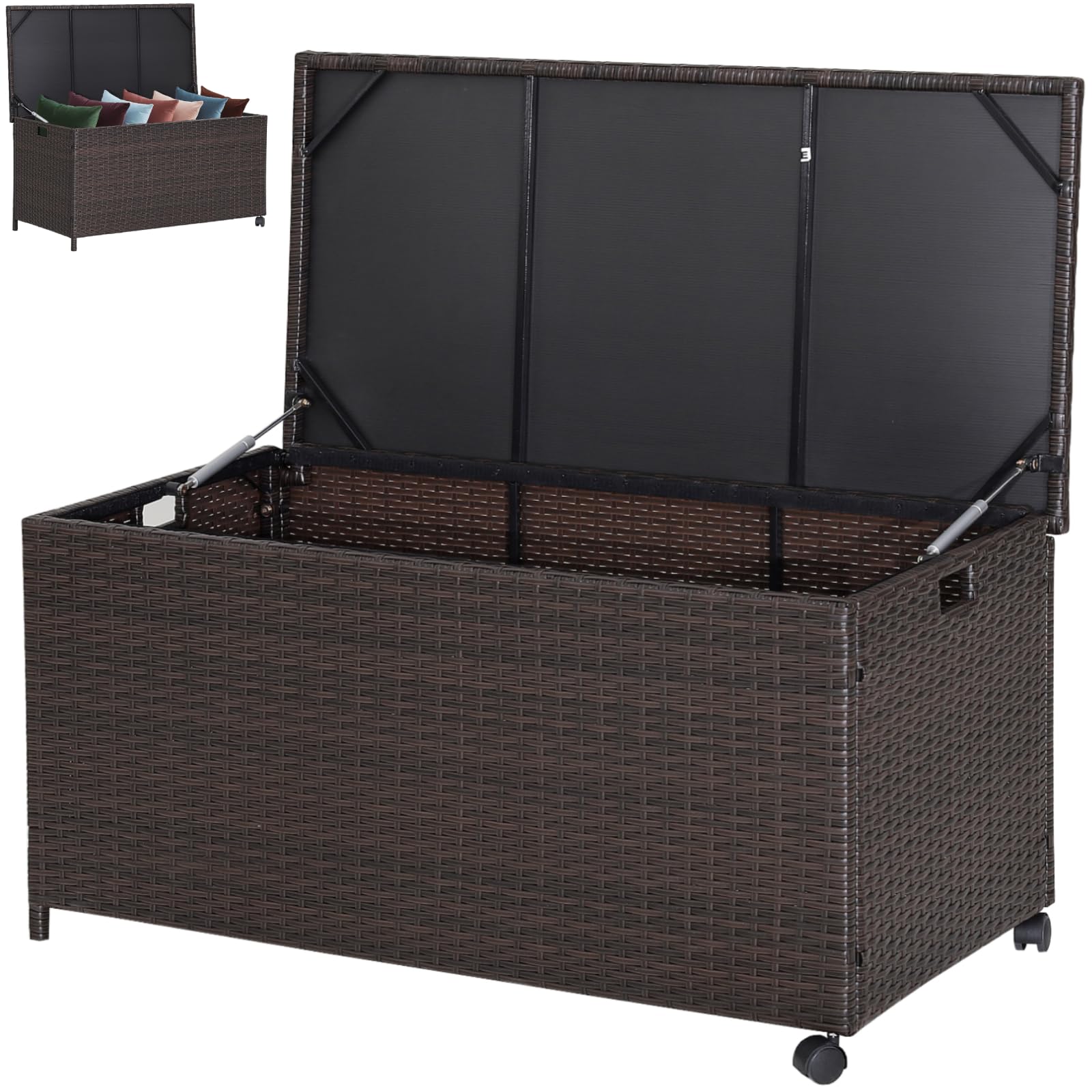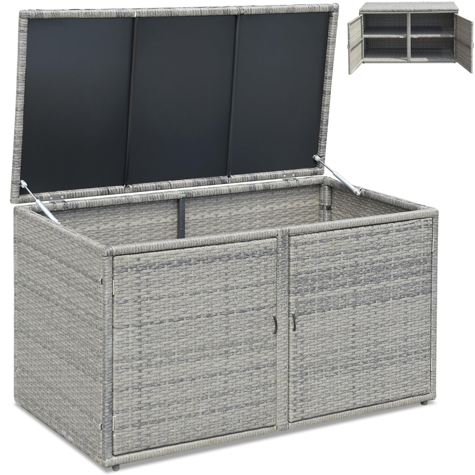 Large Storage Space: Divided into 2 tiers, this rattan deck box has a spacious space that helps to organize various items in storage, such as gardening...