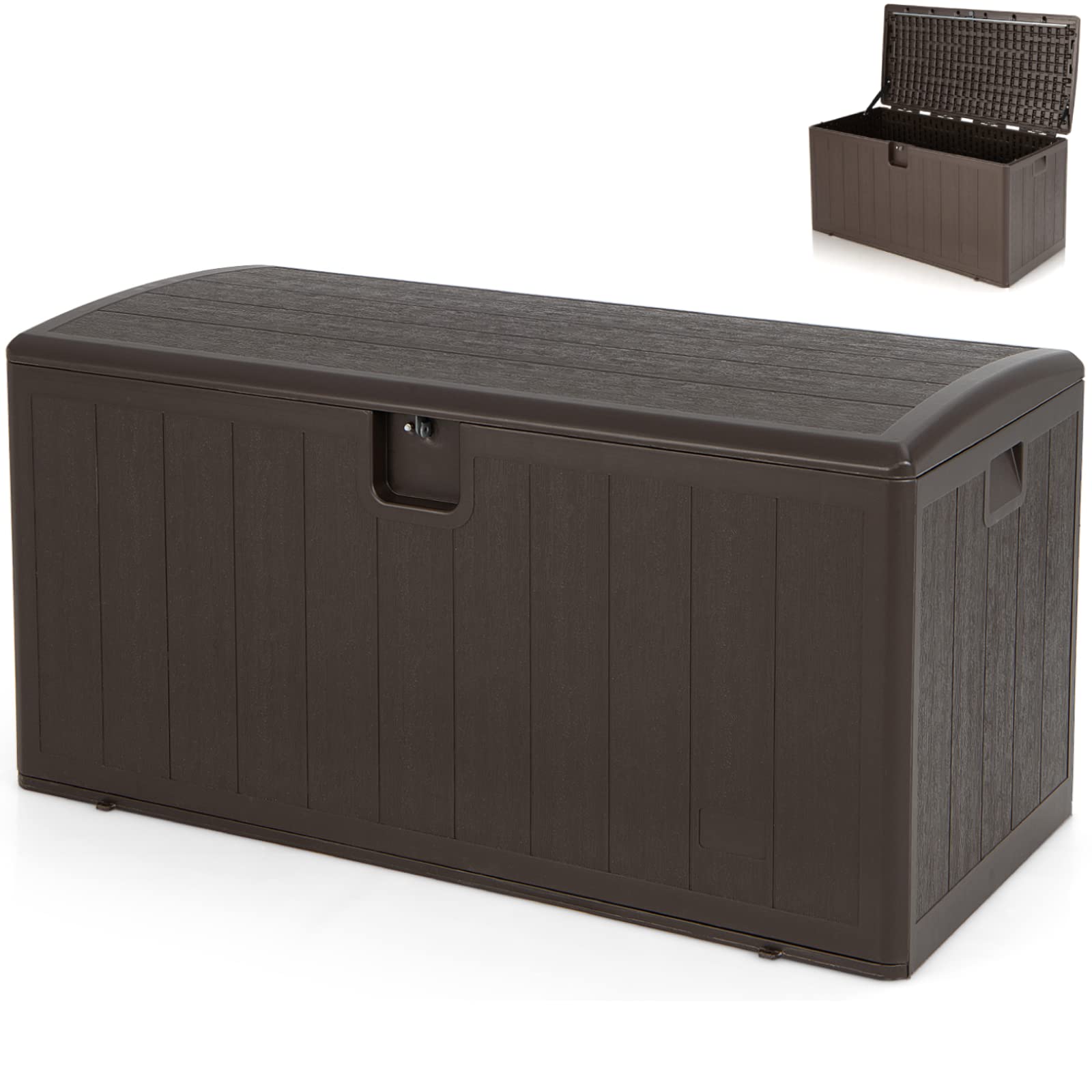 Giantexuk 400l garden storage box, lockable weatherproof deck box with linked strap and side recessed handles