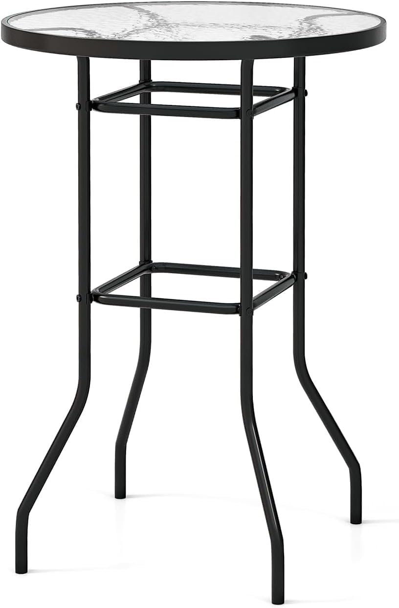 Giantexuk patio bar table with tempered glass tabletop and heavy-duty metal frame