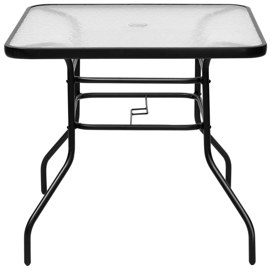 Giantexuk garden table, 80 x 80cm square glass patio dining table with parasol hole