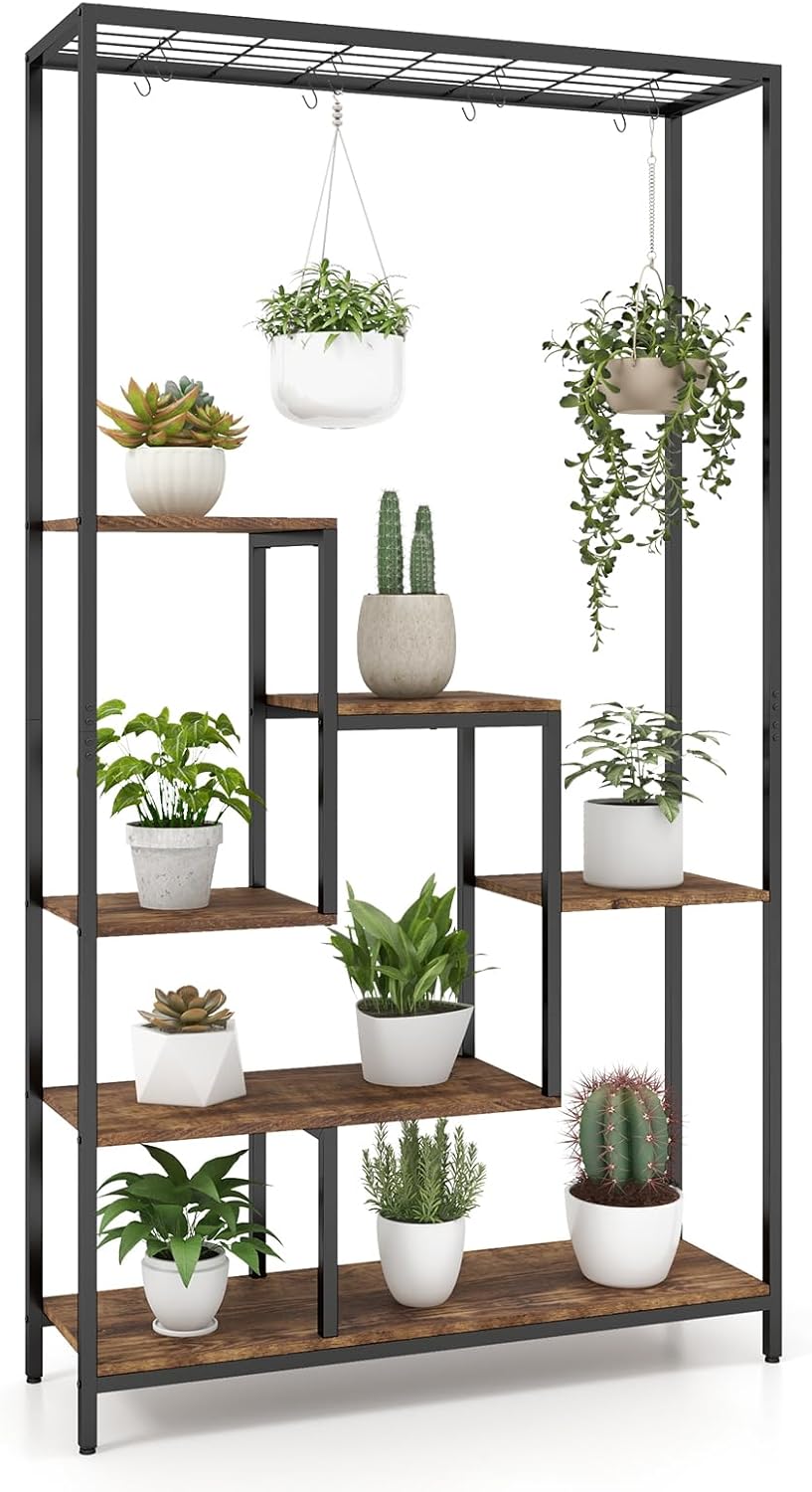 【Staggered 6-tier Plant Shelf】With 6-tier shelves, the plant stand offers ample space to display your greenery, and it can also serve as a display rack, allowing...