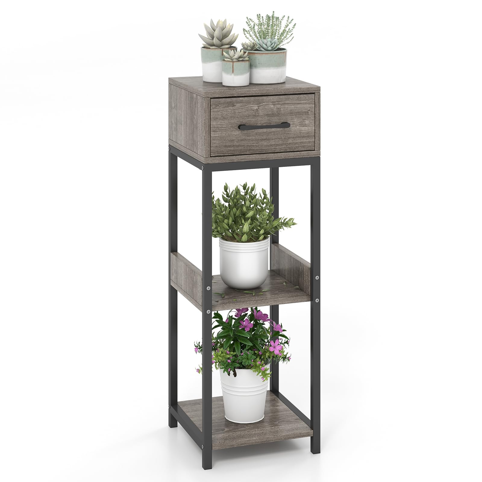 3 tier tall metal plant stand, corner plant holder with anti-tipping devices (with top drawer)