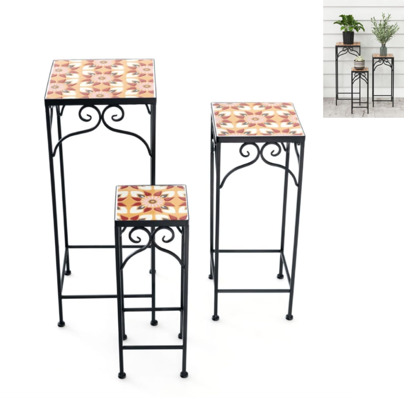 Giantexuk set of 3 metal plant stand, freestanding mosaic flower pot holder with scrollwork patterns & anti-slip foot pads