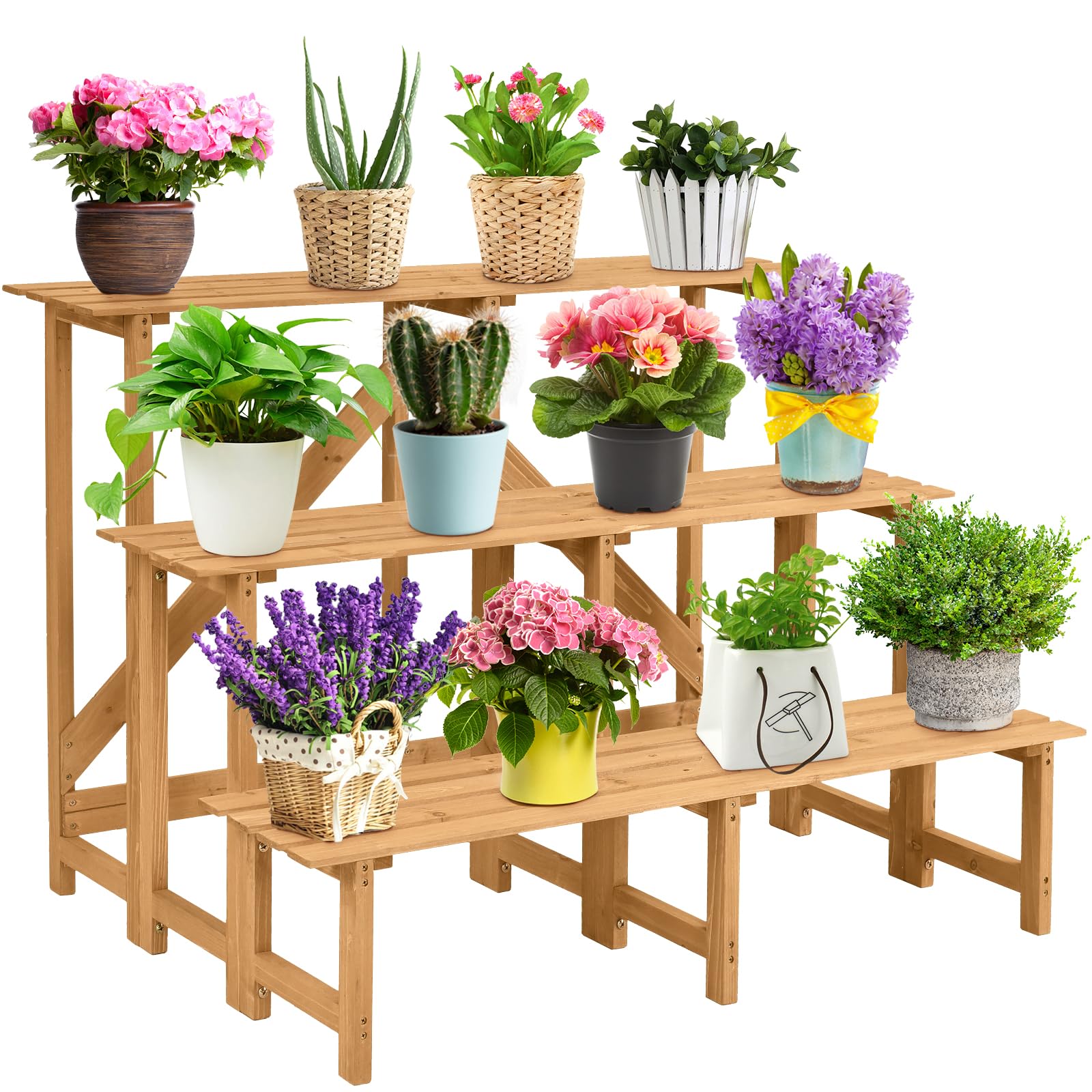 【Selected Carbonized Pine Wood】 Crafted from high hardness pine wood that undergoes a high-temperature carbonization process, the tiered plant shelf ensures resistance to warping and cracking....