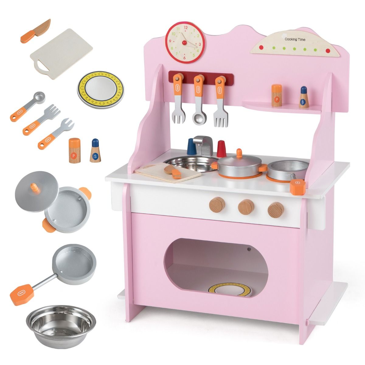 Packed with lifelike features, including a double-burner stove, turning knobs, sink, oven, and even a clock, this set turns any playtime into an interactive culinary adventure....