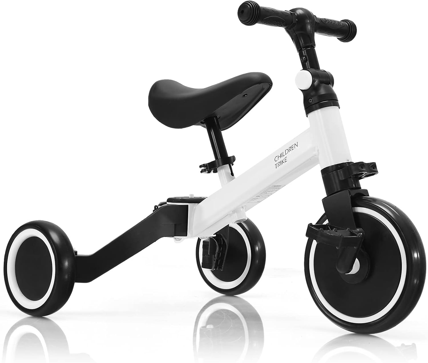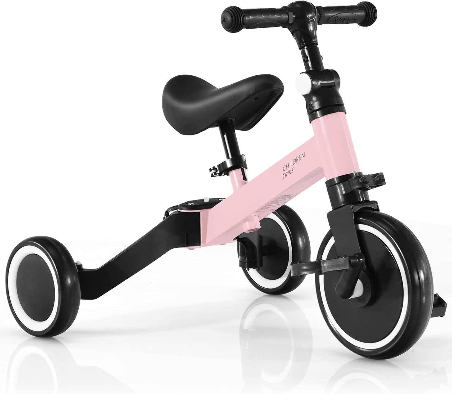 3 in 1 kids trike, folding baby tricycle with adjustable handlebar and pu seat