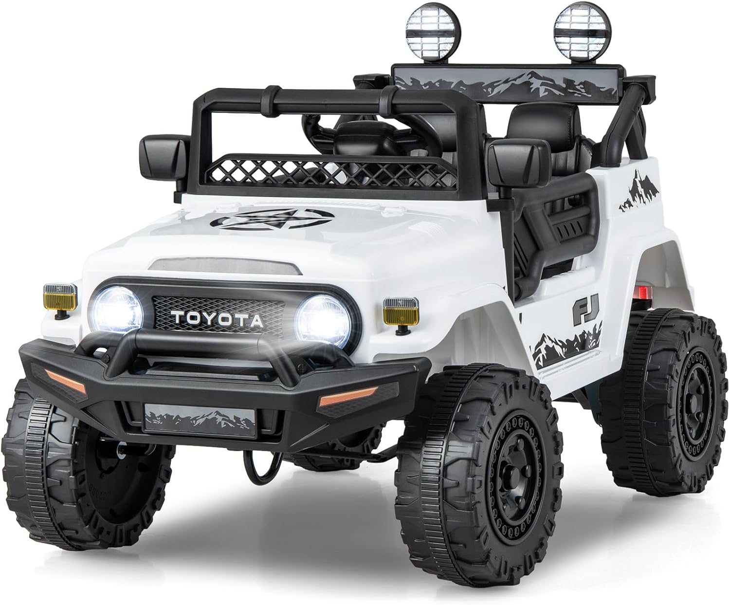 【Officially Toyota FJ Cruiser Kids Truck】This licensed Toyota FJ cruiser ride on toy car is designed with cool LED headlights & rear lights, built-in horn and...