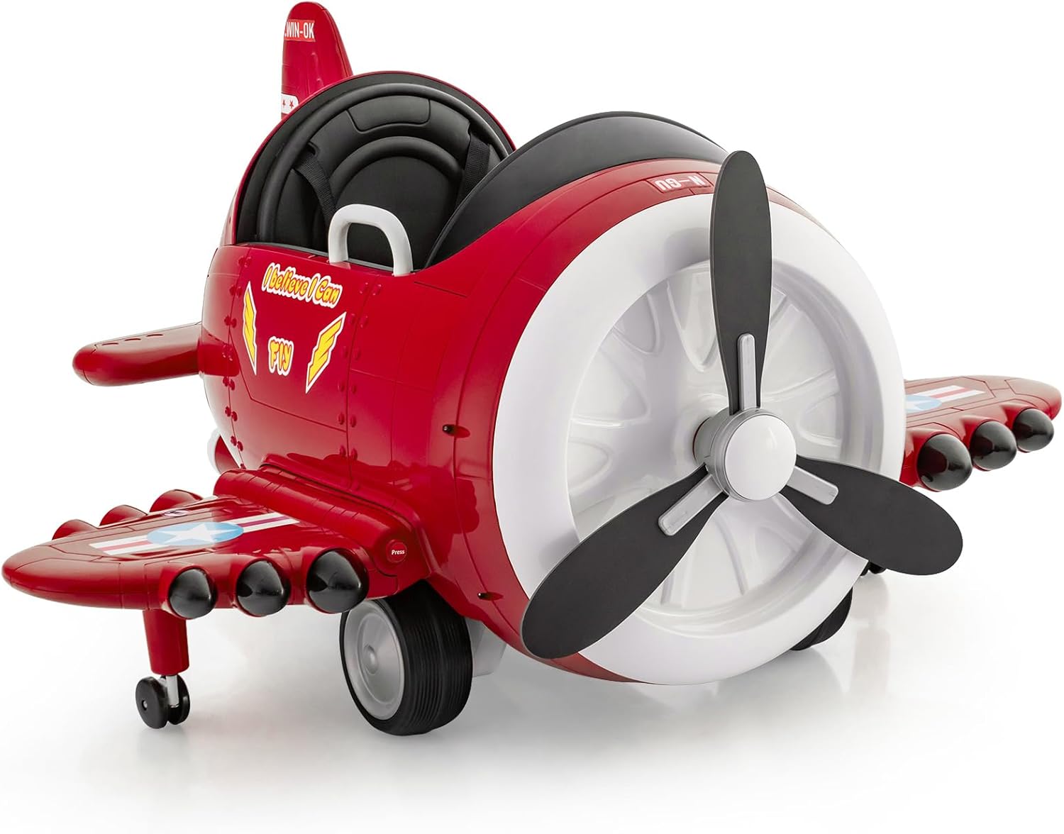 【Cool Airplane Outlook】This kids electric ride on car features a rotary screw propeller, 2 folding airfoils, decorative stickers and vertical & horizontal tails. The realistic plane...