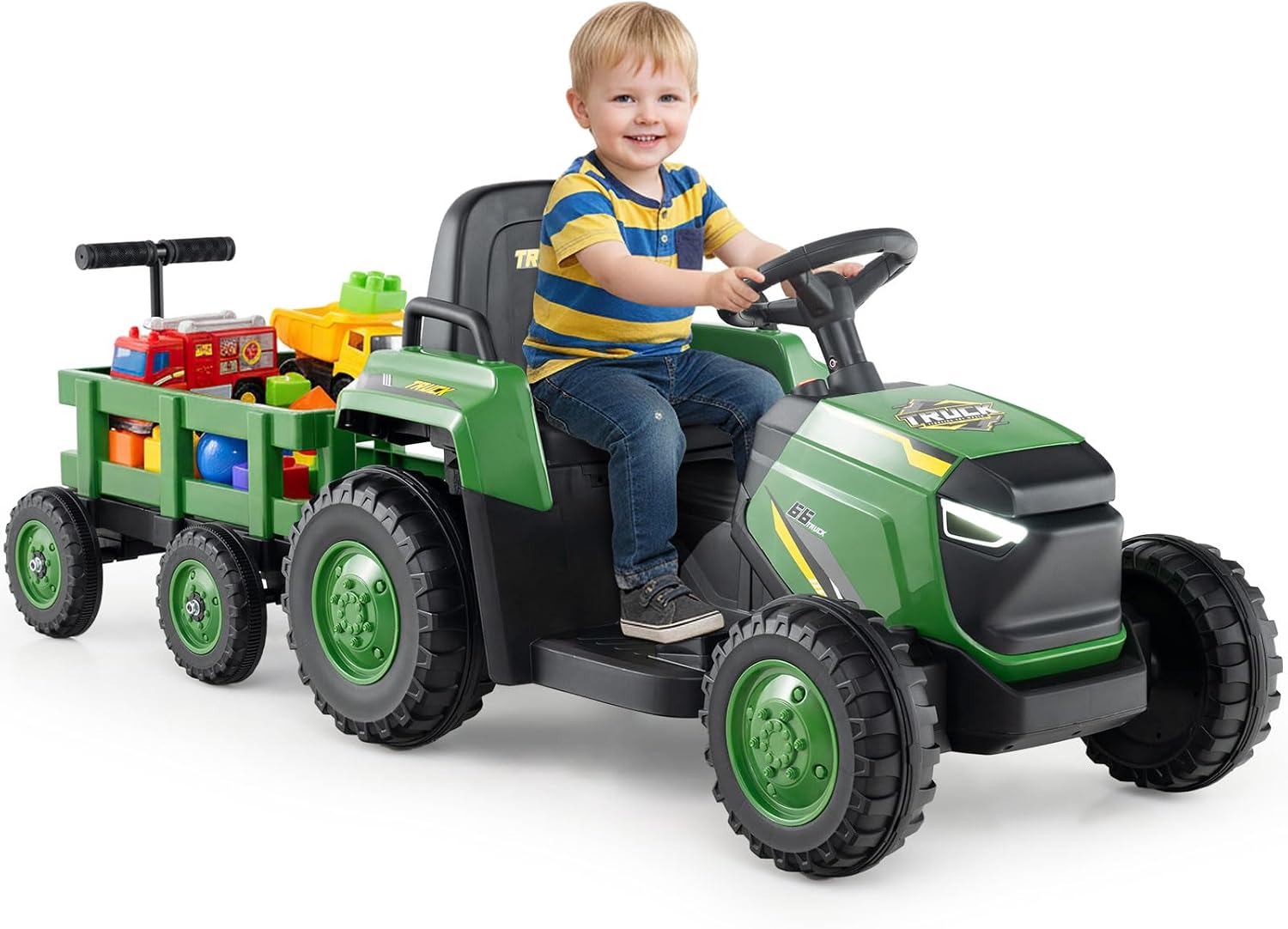 Kids Ride on Tractor 12V Electric Vehicle with Detachable Trailer and Remote Control