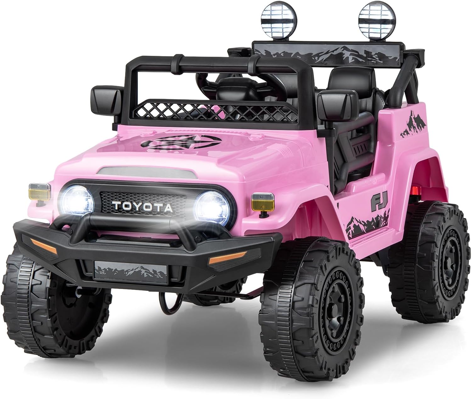 【Officially Toyota FJ Cruiser Kids Truck】This licensed Toyota FJ cruiser ride on toy car is designed with cool LED headlights & rear lights, built-in horn and...