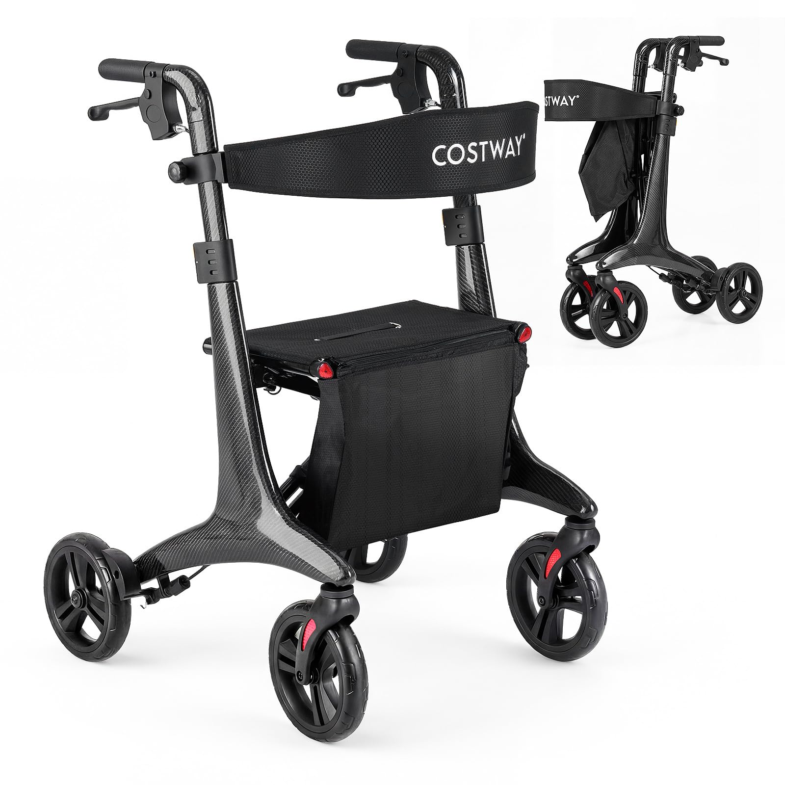 Description:Crafted from premium carbon fiber, this rolling walker delivers exceptional strength while remaining ultralight at just 6 kg, supporting users up to 136 kg with ease....