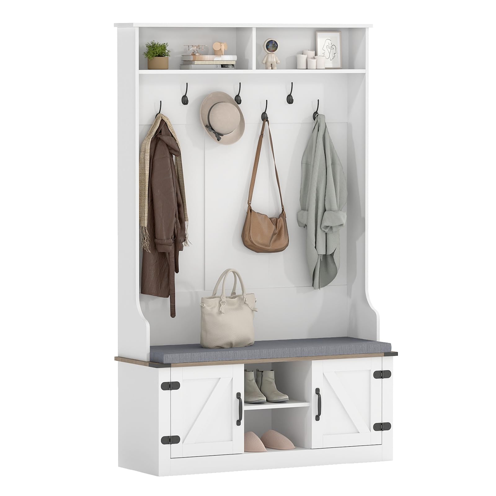 4-in-1 Coat Rack with Seat Cushion and Open Compartments