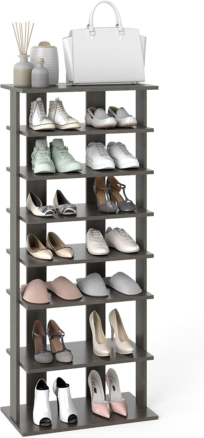Extra Wide Wooden Vertical Shoe Rack with 7 Shelves