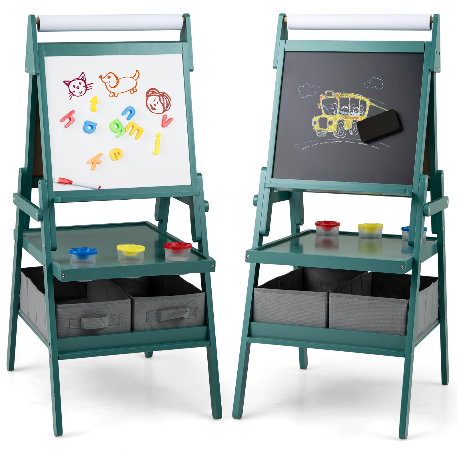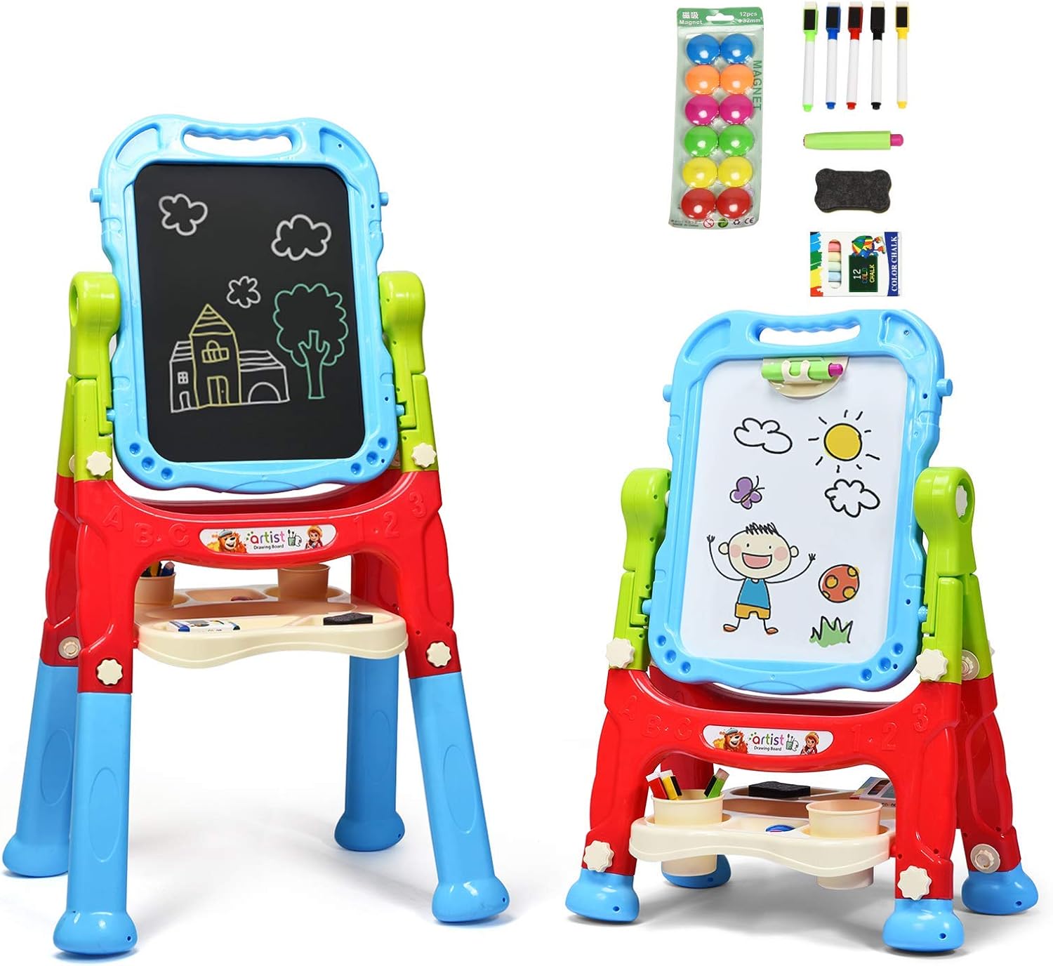 This art easel is a good gift for your little artist to release their talent for painting! Equipped with magnetic whiteboard and chalkboard, the young...