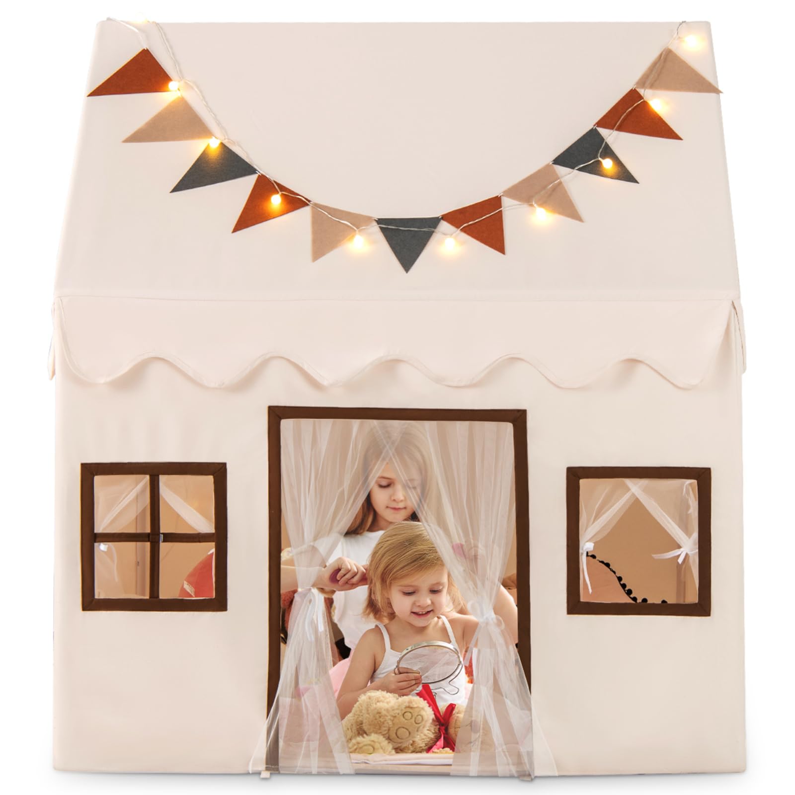 Kids play tent 3-4 kids large play tent house with fabric and screen curtains