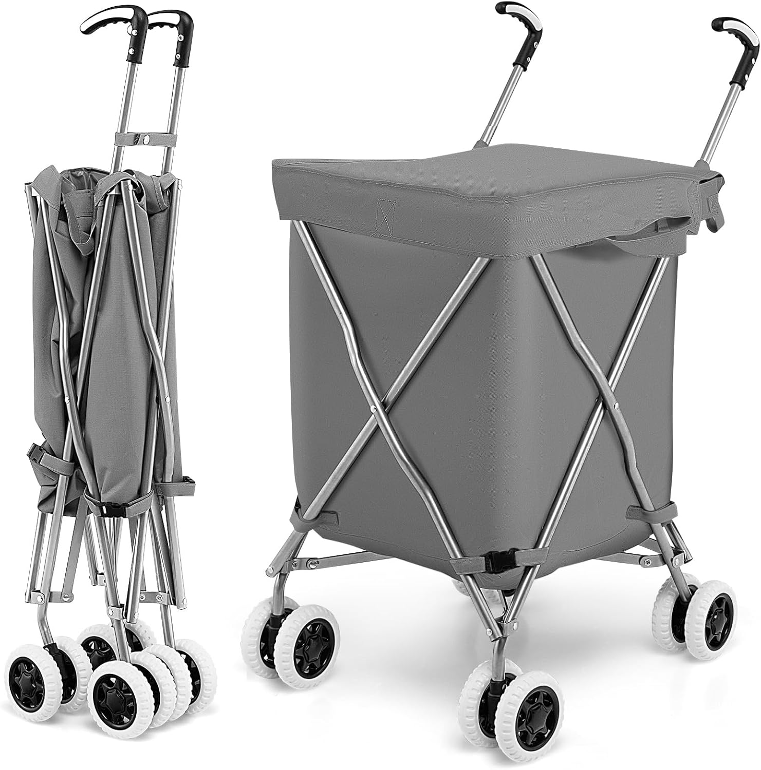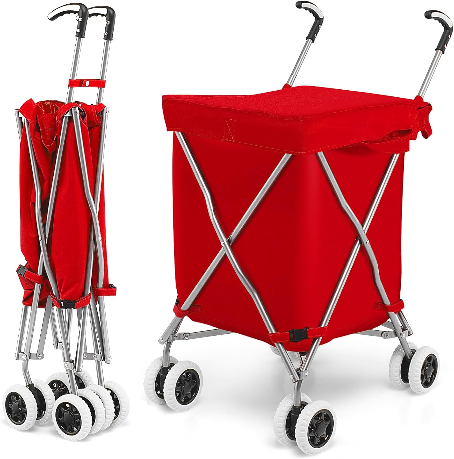 Giantexuk shopping cart on wheels, folding metal grocery trolley with foam-wrapped handle