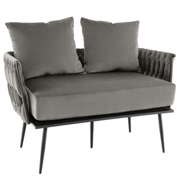 Giantex 2-Seater Sofa Velvet Upholstered Loveseat Sofa Couch with Woven Back & Arms