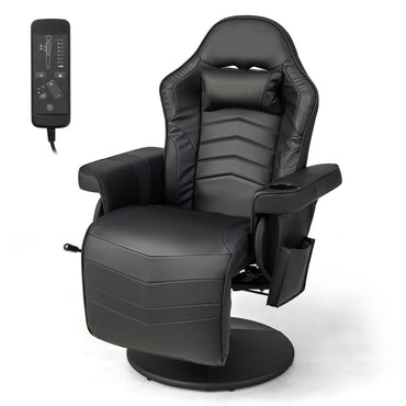 Height Adjustable Swivel Racing Video Massage Gaming Chair with Retractable Footrest