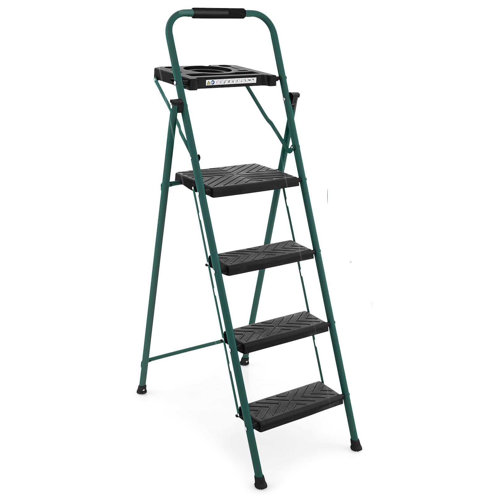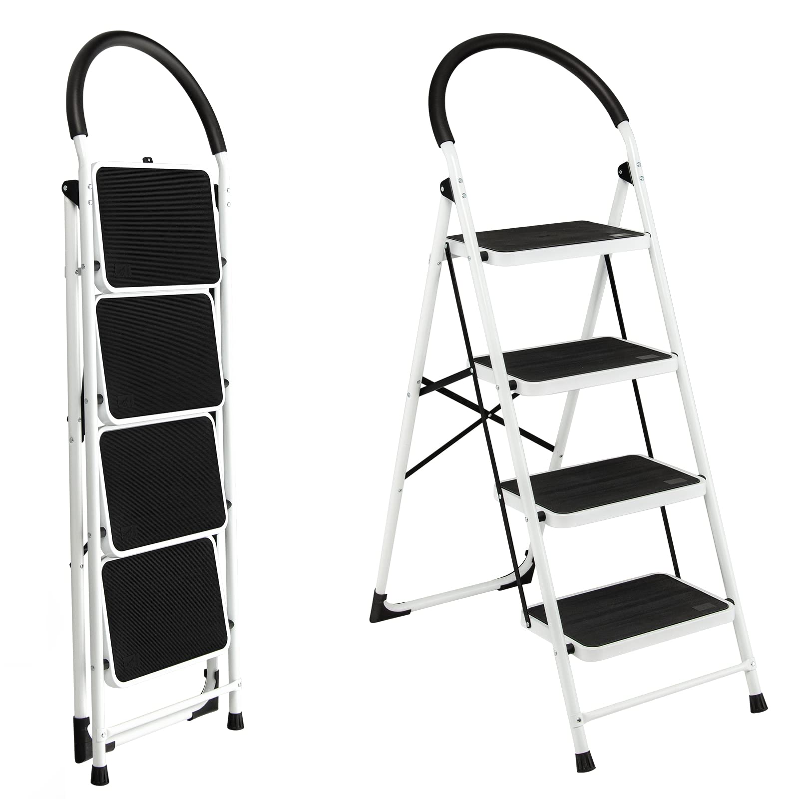 Giantexuk folding 4 step ladder, steel stepladder with anti-slip pedal & reinforced crossbar (4 step, 90x46x136cm)