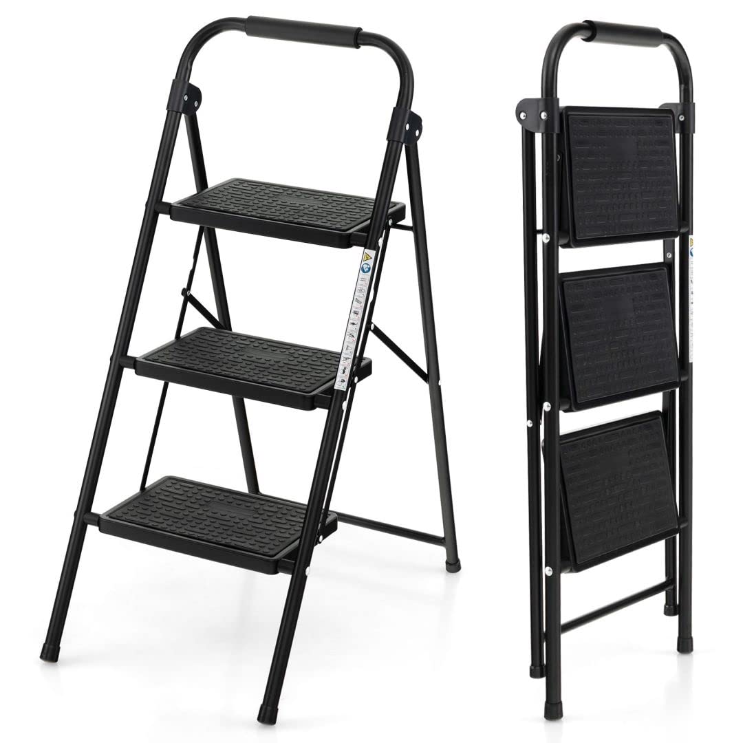 Giantexuk 3 folding step ladder, aluminum tread stepladder with anti slip pedal and footpads