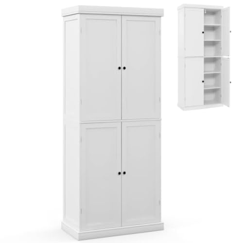 Product Description Product Details: Say goodbye to a cluttered kitchen! Attached with 4 doors and 6-tier shelves, the pantry cabinet provides you with multiple storage options...
