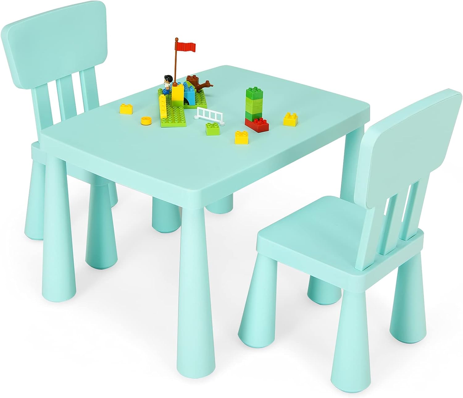 【Height Adjustable Design】Both of the table and chairs are designed with adjustable height that adapts to kids of different heights. The table has 7 adjustable heights...