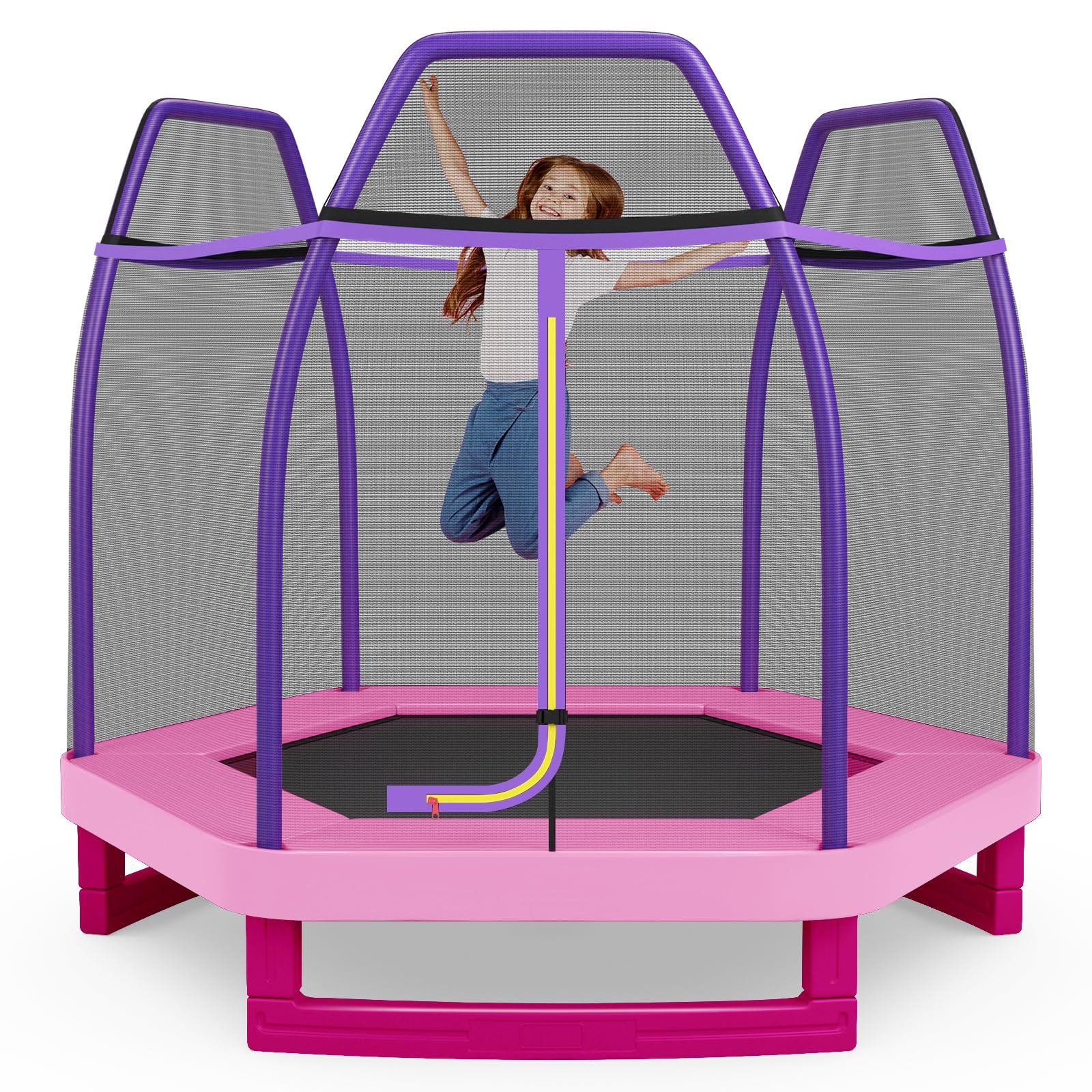 7ft kids trampoline heavy duty hexagonal trampolines with safety enclosure net