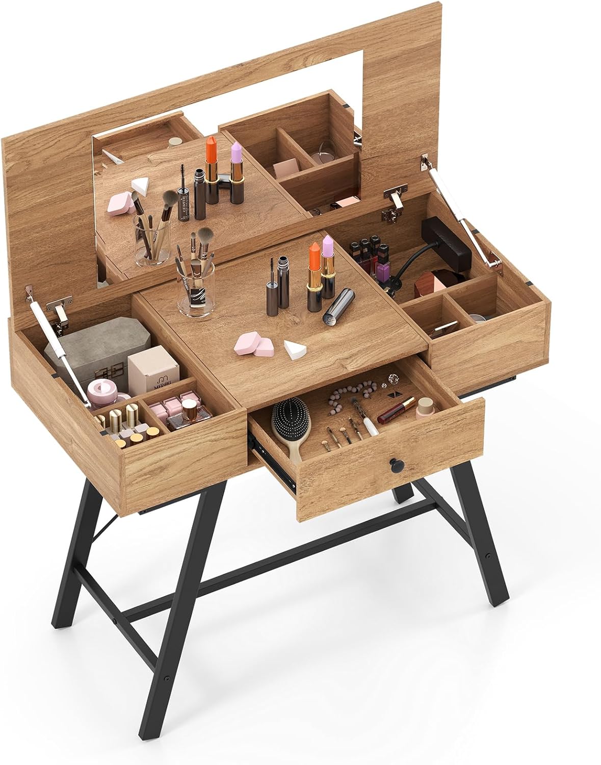 【More than a Vanity Table】With smooth and safe metal hinge, the flip top mirror can hidden, presenting you with a wide desktop to make items within...