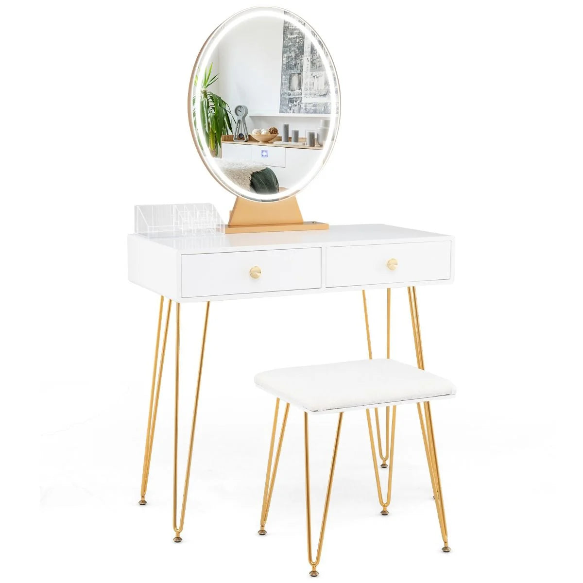 Vanity set with led lighted mirror and soft cushioned stool for bedroom