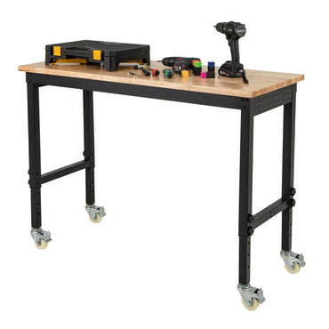 Adjustable Workbench with Wheels and Heavy-Duty Metal Frame