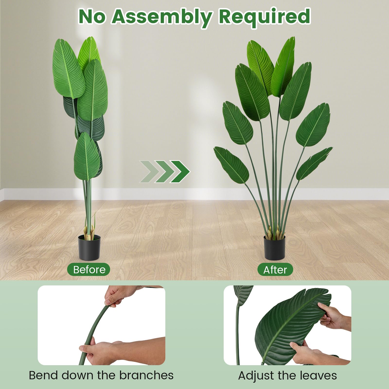 More Realistic Designs: This fake tropical palm tree is designed with realistic banana leaves to add a touch of natural feeling to your own home. Plus, the realistic PE trunk and vibrant lush mosses add an extra touch of authenticity.