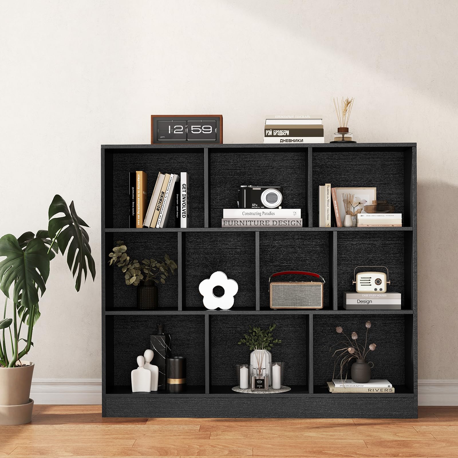 10 Open Compartments: This 3-tier bookshelf features 10 open cubes (6 large and 4 small cubes), plus a spacious top, offering convenient organization and easy access. Moreover, the varying sizes of the cubes also allow you to effectively display your books, toys, decorations, storage baskets, etc.