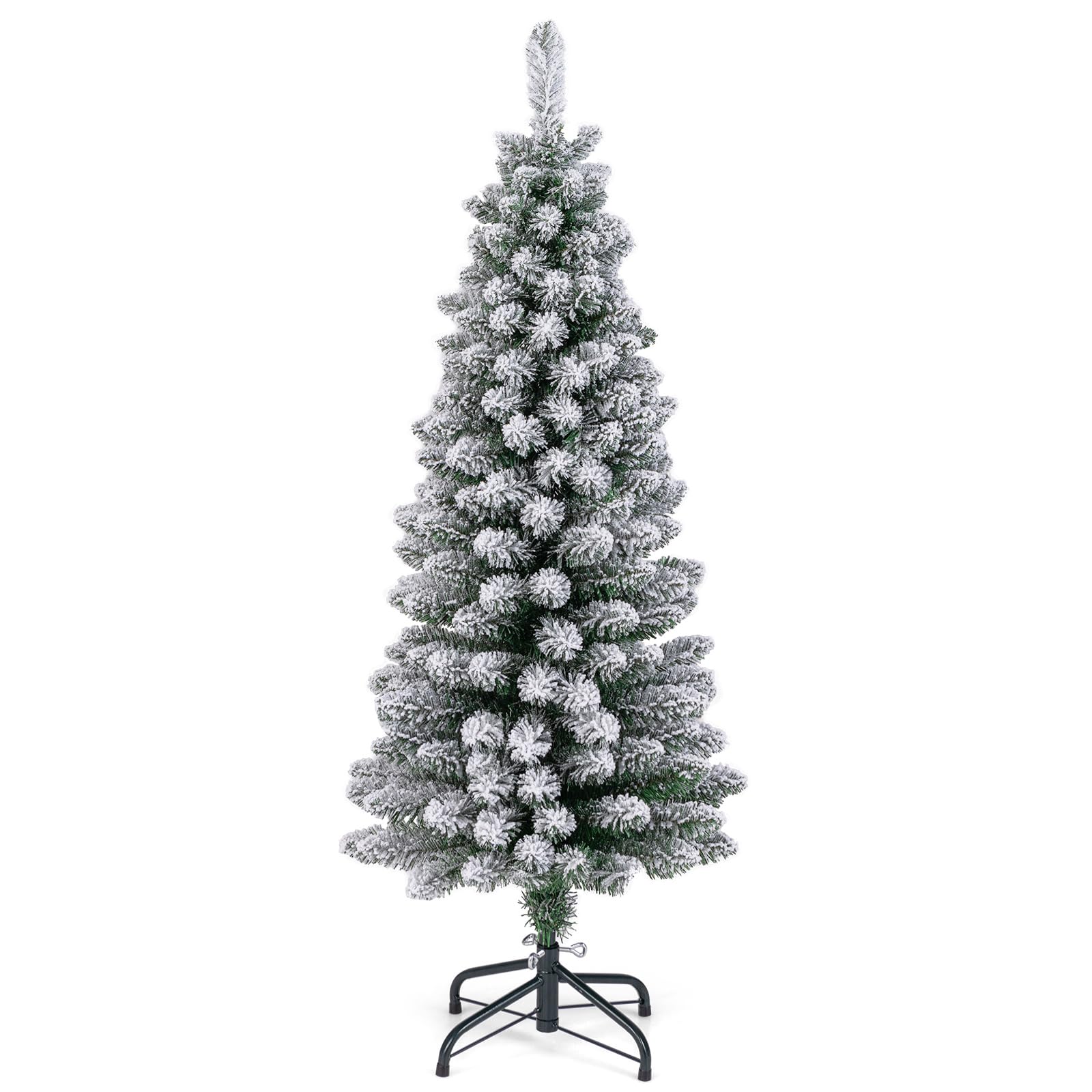 The 240/328/460 dense branch tips of our artificial Christmas tree boast bullet-shaped design, giving it an attractive appearance. The snow flocked design enhances the lifelike appearance, resembling a freshly snow-dusted tree straight out of a winter fairy tale. Crafted from flame-retardant and anti-fading PVC material, this Xmas tree ensures safety for your household and guests. With a cross-shaped metal stand, the slim seasonal decoration tree offers superior stability to prevent any wobbling. The smart pencil shape design of this tree makes it ideal for fitting into limited corners without compromising on the fullness of the tree. Plus, the detachable 2/3-section design of this tree makes both assembly and storage a breeze.