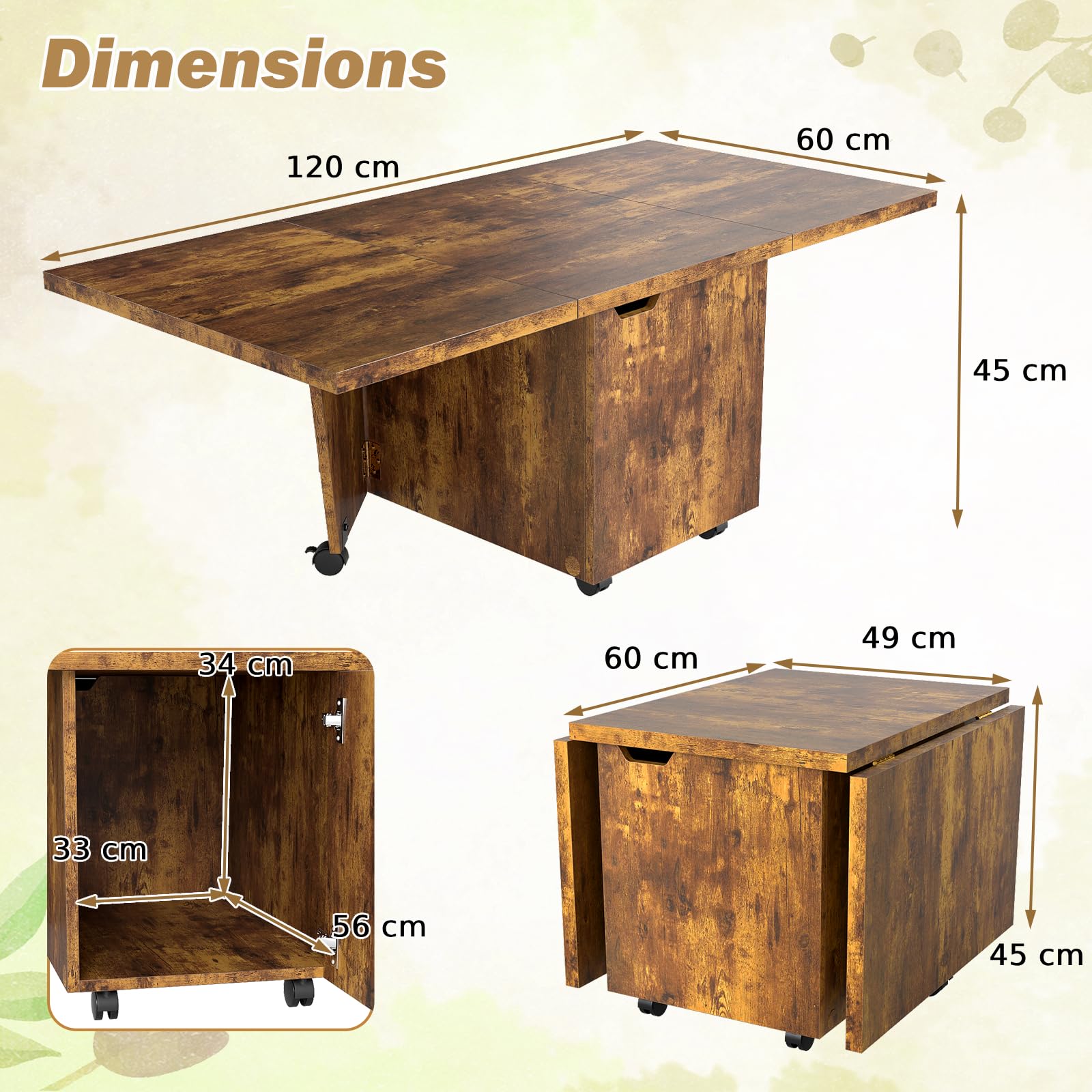 120cm Extendable and Foldable Coffee Table with Storage Cabinet and Wheels