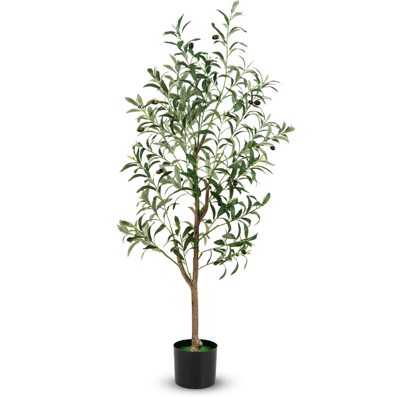 Lifelike Appearance: This 130 cm tall artificial olive tree features full-bodied leaves with verdant colors and vivid olive fruits, which is designed to replicate the natural beauty of real olive trees. Additionally, there is realistic moss covered on the flowerpot, adding authenticity to the whole look.