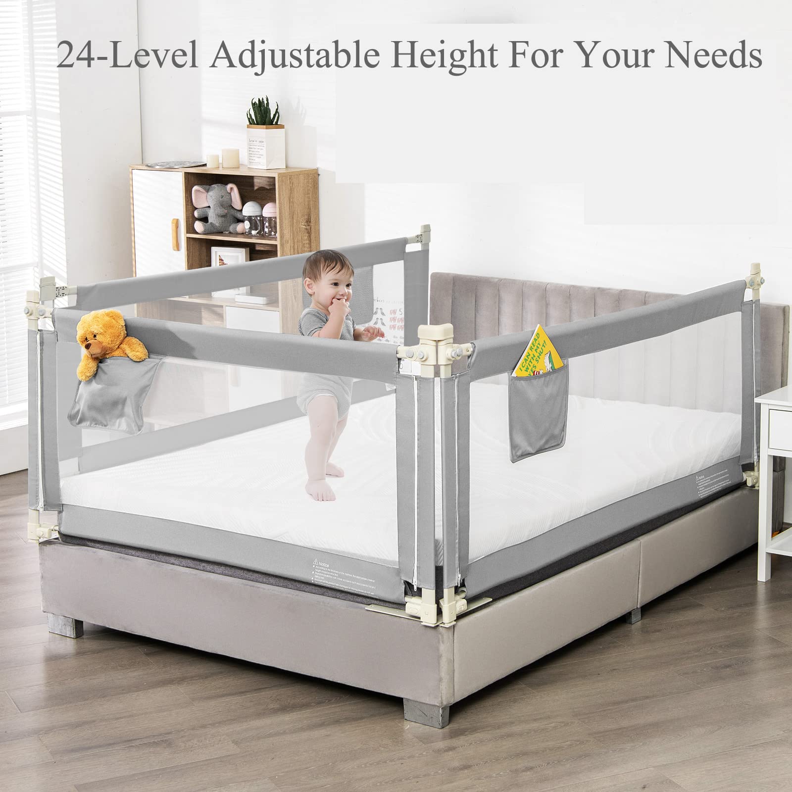 Vertical and Independent Lifting Design: Each side of our bed rail can be lifted vertically and independently, which will bring more convenience as getting in and out of the bed or holding the baby on the bed. With double safety child lock, this baby bed rail protects your active baby from accidents.