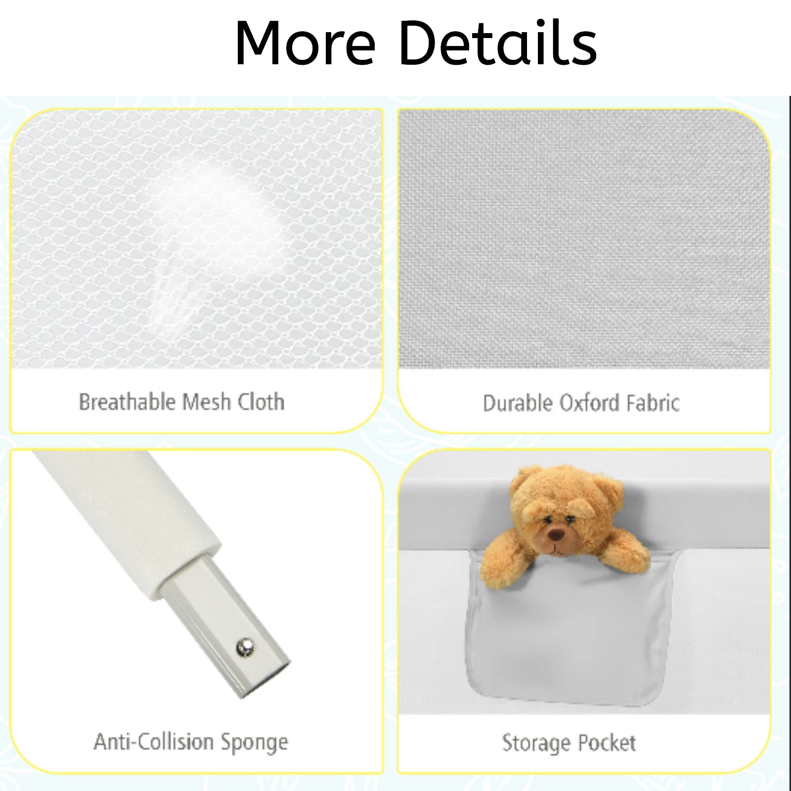Bed Rail with Storage Pocket: The bed rail is a great companion for toddlers, which allows parents take a break and protects active kids from falling off the bed. Besides, the bed rail is designed with a storage pocket which is perfect for storing toys or diapers.