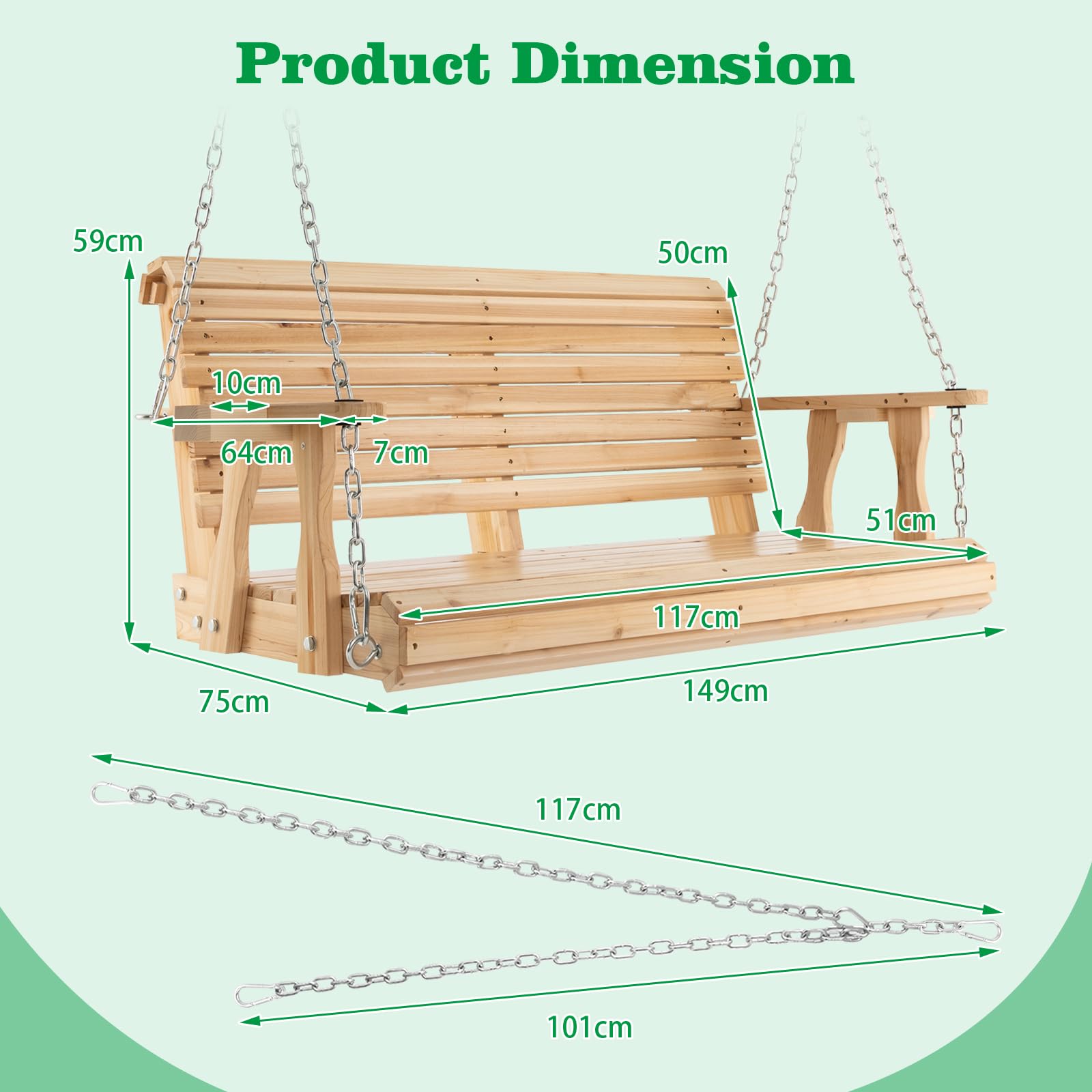 Nature Fir Wood Material: Made of 100% natural fir wood, with a painted varnish finish, this porch features a long service life, with beautiful wood grain. In addition, the 149cm cm bench swing is large enough for two people to sit together.