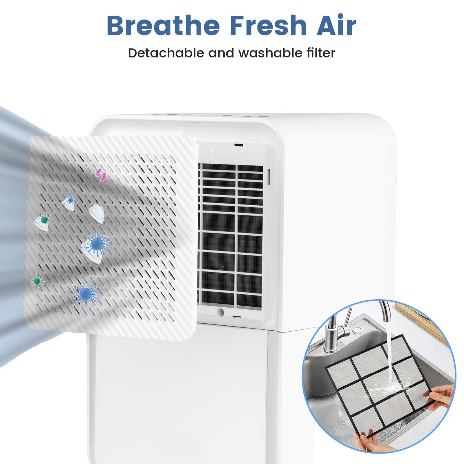 Effortless Mobility and Maintenance: Designed with 4 universal wheels and a portable handle, this dehumidifier can be easily moved from one room to another. In addition, the detachable and washable filter ensures hassle-free cleaning as well as fresh air.