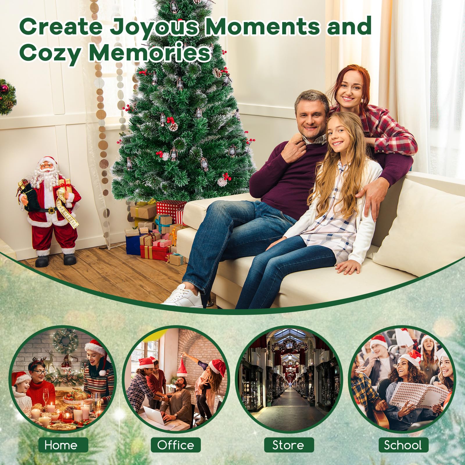 Lifelike Design: The 150/180 cm Christmas tree captivates with 170/220 lush branch tips dusted in snowy pine needles, adorned with 16/20 natural pine cones and 16/20 clusters of red berries. The tree presents a festive flourish that brings the warmth of winter.