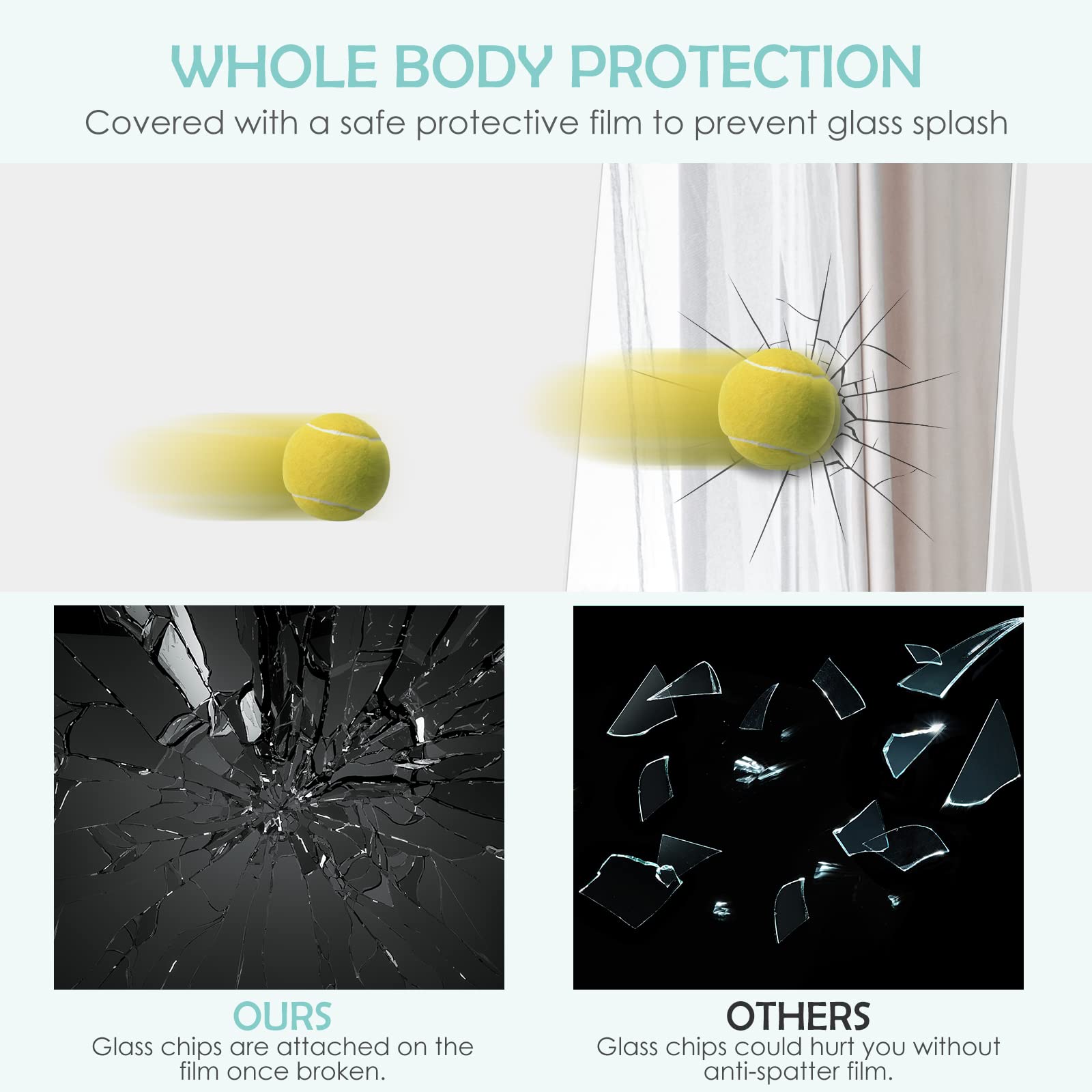 Reliable Safety Protection: Compared with ordinary mirrors, our glass features a protective explosion-proof film, which will not splash out fragments even impacted by external force, ensuring the safety of you and your family. In addition, the rounded corners can effectively prevent accidental injuries.