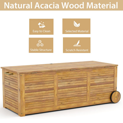 3- Constructed from solid acacia wood, this garden storage box exudes natural charm while enduring great stability.