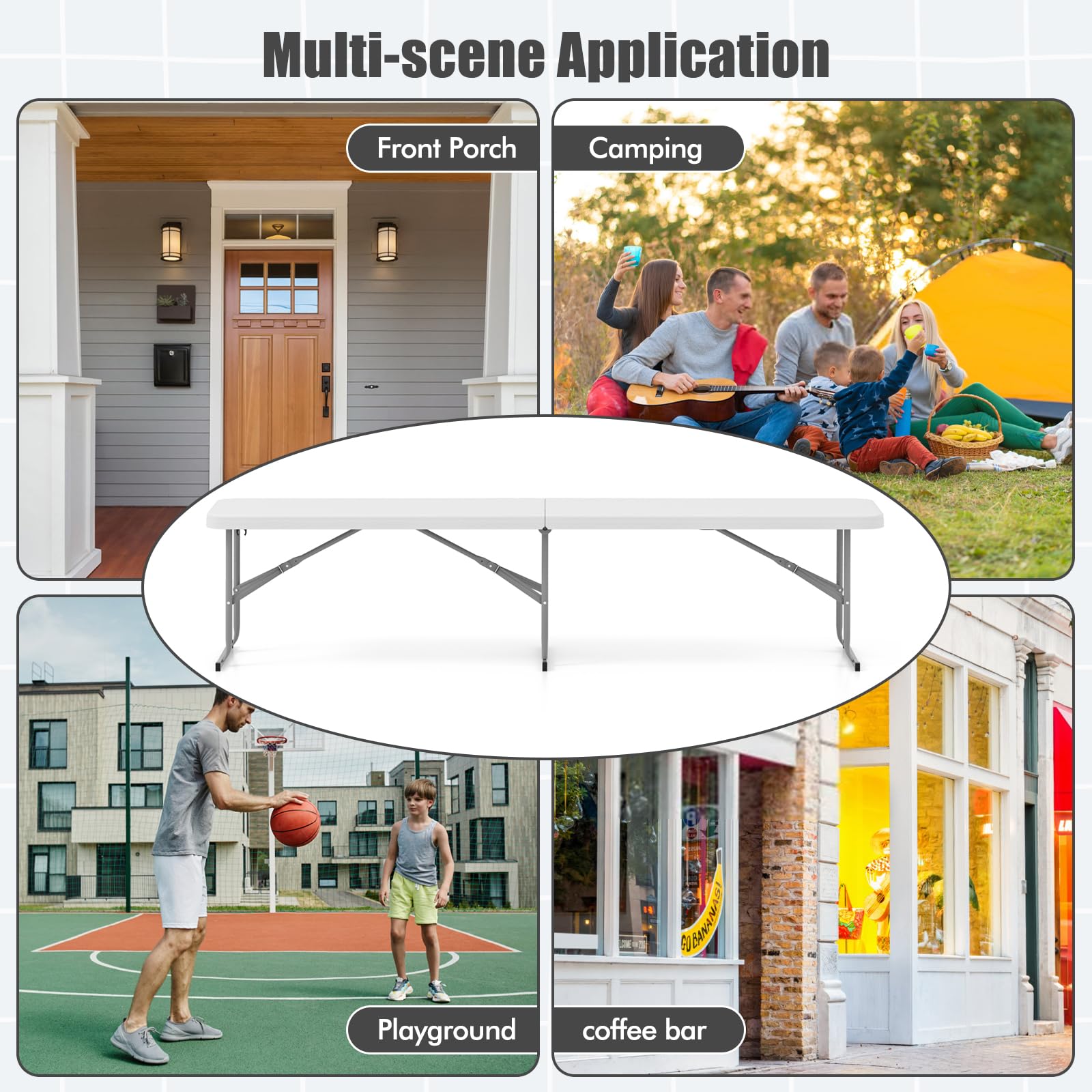 Indoor and Outdoor Application: Whether at home or on the go, this folding bench can be a perfect choice for various indoor and outdoor activities, such as dining, picnics, backyard barbecues, camping trips, tailgating events, weddings, sports events, and more.