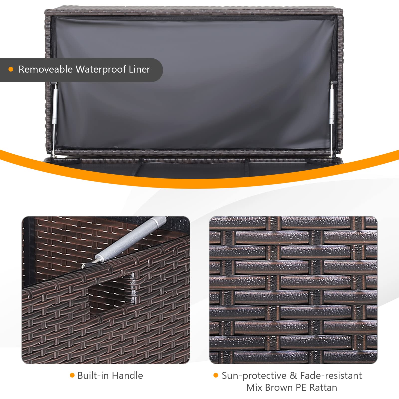 190l weatherproof garden storage box with zippered liner & pneumatic rod